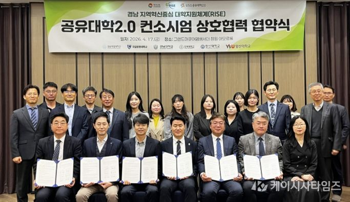(케이시사타임즈) 경상국립대학교 라이즈(RISE) 사업단 지역교육혁신센터는 4월 17일 창원 그랜드머큐어호텔에서 ‘공유대학2.0 컨소시엄 과제’ 참여대학 간 상호 협력 협약(MOU)을 체결했다.