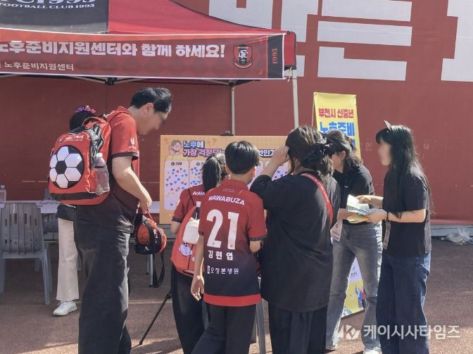 (케이시사타임즈) 부천시는 지난 18일 부천종합운동장에서 열린 부천FC1995 홈경기에서 노후준비서비스 홍보부스를 운영했다. 이번 행사는 시민의 체계적인 노후 대비를 지원하고 관련 인식을 확산하기 위해 마련됐다.