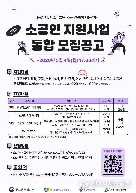 (케이시사타임즈) 용인시산업진흥원 소공인특화지원센터는 용인시 소재 소공인의 경쟁력 강화를 위해 소공인 지원사업을 본격 추진하고, 참여기업 총 49개사를 모집한다고 밝혔다.