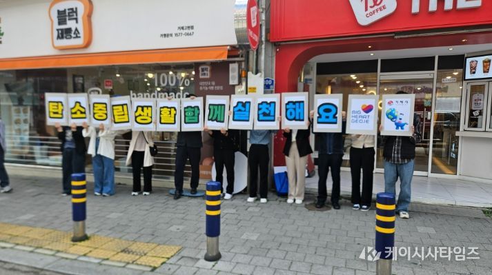 (케이시사타임즈) 거제시는 기후변화주간을 맞아 고현사거리와 고현시장 일대에서 탄소중립 실천 문화 확산을 위한 거리 캠페인을 실시했다고 20일 밝혔다.