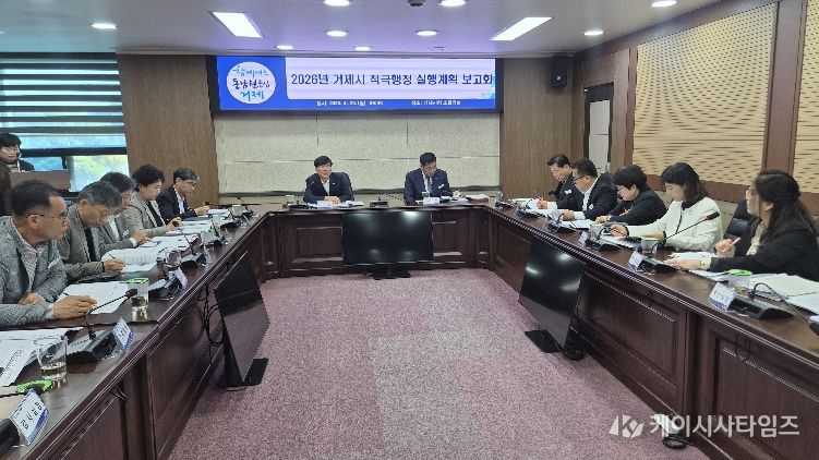 (케이시사타임즈) 거제시는 20일 시청 소회의실에서 조직 내 적극행정 문화를 확산하고, 실천 의지를 다지기 위해 ‘2026년 거제시 적극행정 실행계획 보고회’를 개최했다.