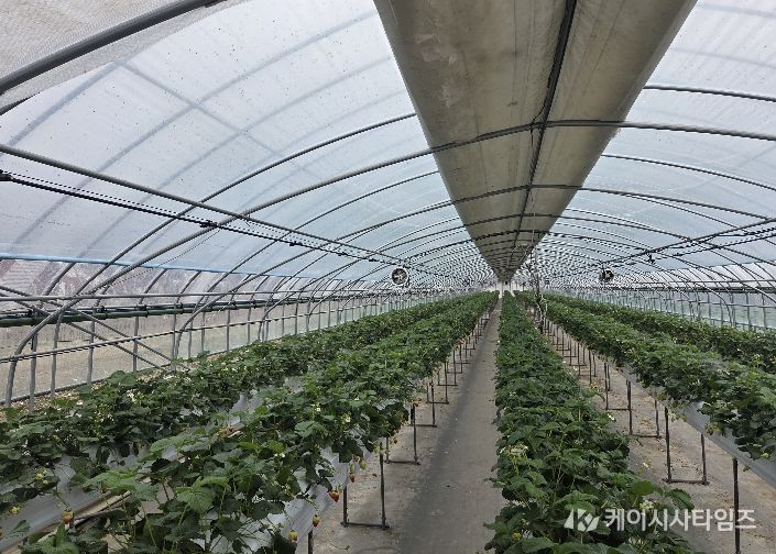 (케이시사타임즈) 금산군농업기술센터는 평균기온 상승으로 어려움을 겪고 있는 관내 딸기 재배농가 2곳을 대상으로 고온 대응 에어포그 시스템 지원에 나선다.