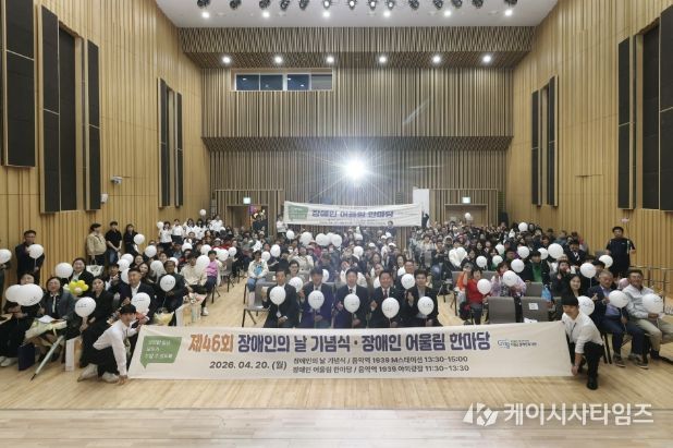 (케이시사타임즈) 가평군은 20일 가평군장애인복지관 주관으로 ‘제46회 장애인의 날 기념식 및 화합 행사’를 개최했다. 음악역1939에서 열린 이번 행사에는 장애인과 시설·단체 관계자, 지역 주민 등 400여 명이 참석해 의미 있는 소통의 시간을 가졌다.