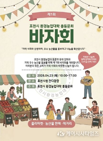 (케이시사타임즈) 포천시 환경농업대학 총동문회가 오는 4월 23일, 지역사회와의 상생과 나눔을 실천하기 위한 ‘제1회 나눔 바자회’를 개최한다.