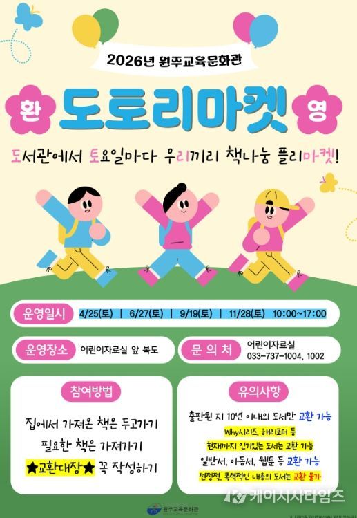(케이시사타임즈) 원주교육문화관은 4월 25일부터 책나눔 ‘도토리마켓’을 운영한다.