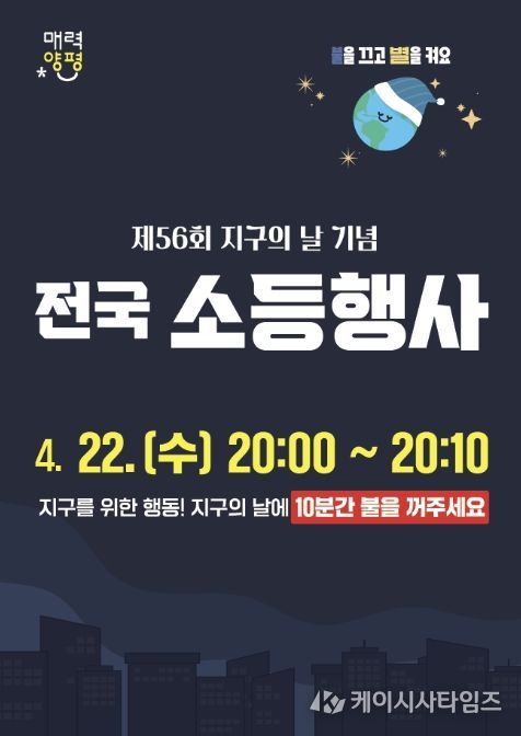특히 지구의 날 당일인 22일 오후 8시부터 10분간 전 군민이 참여하는 ‘소등 행사’가 진행된다. 양평군청을 비롯한 관내 공공기관은 전면 소등에 참여하고, 공동주택과 일반 가정에서도 자율적으로 동참할 수 있도록 할 계획이다.