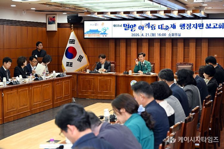 (케이시사타임즈) 경남 밀양시는 21일 시청 소회의실에서 오는 5월 7일부터 10일까지 나흘간 열리는 제68회 밀양아리랑대축제의 성공적인 개최를 위한 행정지원 보고회를 가졌다.