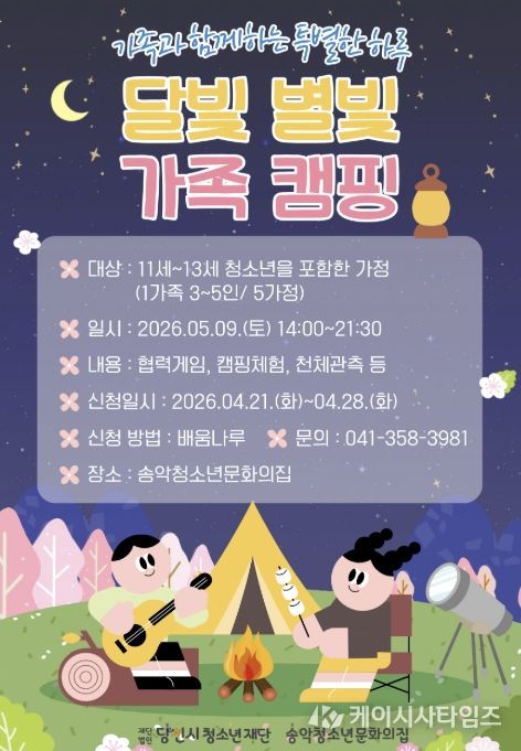 (케이시사타임즈) 송악청소년문화의집은 가족 간 소통과 유대감 강화를 위한 ‘2026년 가족캠핑 프로그램 달빛·별빛 가족캠핑’ 참가자를 모집한다.