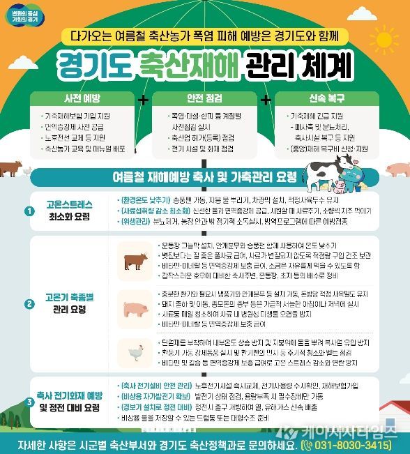 (케이시사타임즈) 경기도가 올여름 무더위로부터 축산농가를 보호하기 위해 예산 지원과 현장점검을 아우르는 전방위적 대응에 나섰다.