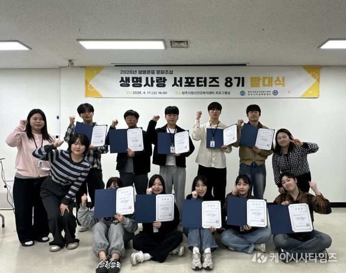 (케이시사타임즈) 원주시자살예방센터는 지난 17일 자살 예방과 생명 존중 문화 확산을 위한 ‘제8기 생명사랑 서포터즈’ 발대식을 개최했다.