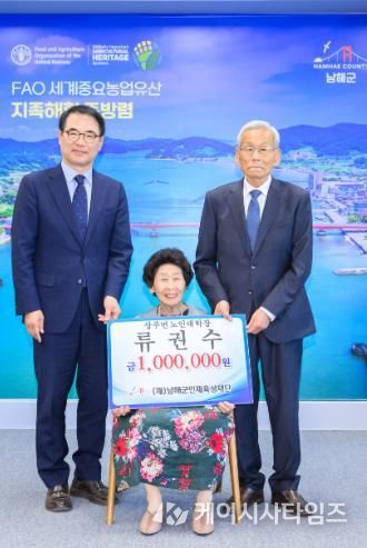 (케이시사타임즈) (재)남해군인재육성재단은 올해 구순을 맞은 류권수 상주면 노인대학장이 100만 원의 인재육성기금을 기탁했다고 밝혔다.