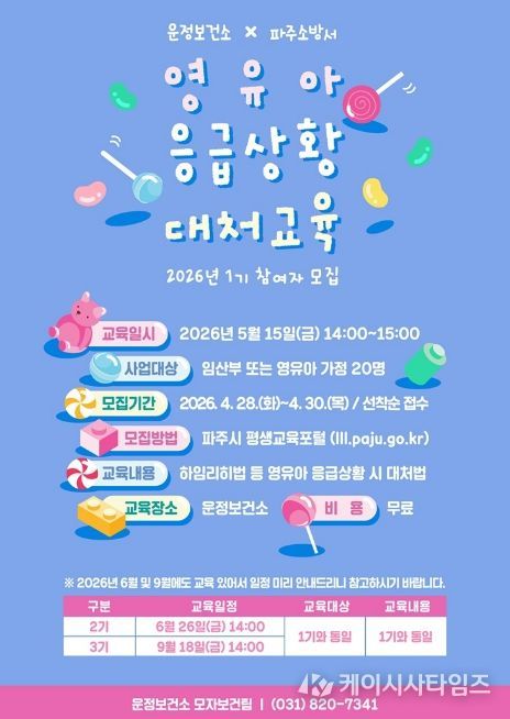 (케이시사타임즈) 파주시 운정보건소는 영유아 가정의 안전 역량 강화를 위해 파주소방서와 연계해 ‘영유아 응급상황 대처교육’을 실시한다.