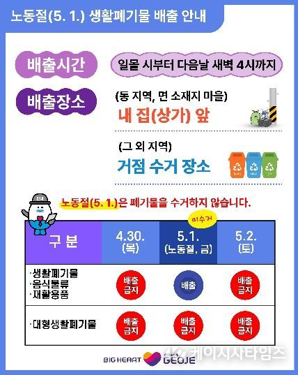 (케이시사타임즈) 다가오는 노동절(5월 1일)에는 모든 생활폐기물을 수거하지 않는다.