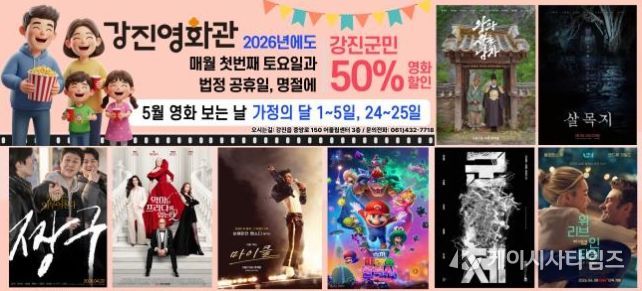 (케이시사타임즈) 강진군이 가정의 달 5월을 맞아 강진영화관 ‘영화 보는 날’ 행사를 운영한다.