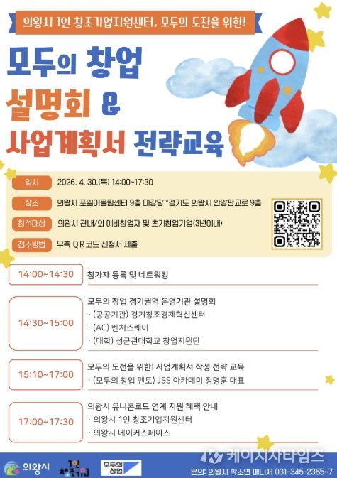 (케이시사타임즈) 의왕시 1인 창조기업지원센터는 4월 30일, 창업을 희망하는 예비 및 초기 창업자를 대상으로 ‘모두의 창업’ 설명회 및 전략 교육을 개최한다.