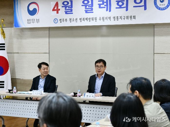 (케이시사타임즈) 수원시 영통구는 지난 21일, 법무부 청소년 범죄예방위원 수원지역 영통지구위원회(이하 ‘범죄예방위원회’) 주관으로 영통구청 상황실에서 4월 월례회의를 개최했다.