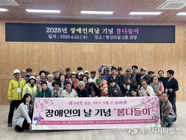 (케이시사타임즈) 충북 증평군은 장애인 주간을 맞아 22일 좌구산 일원에서 지역 장애인들의 정서적 힐링과 소통을 위한 ‘좌구산 봄나들이’를 진행했다고 밝혔다.