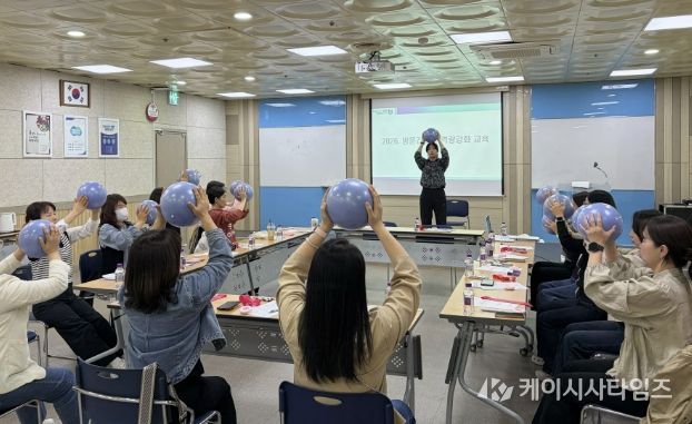 이날 교육은 방문간호사의 건강관리 역량 강화를 위해 마련됐으며, 운동교육과 구강관리 실습 중심으로 진행됐으며, 통합건강돌봄센터 소속 운동지도사와 치과위생사가 강사로 참여해 현장에서 활용 가능한 실무 중심 교육을 제공했다.
