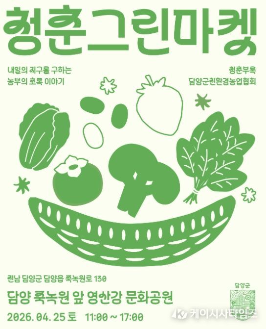 (케이시사타임즈) 담양군친환경농업협회가 오는 25일 오전 11시부터 오후 5시까지 죽녹원 앞 영산강 문화공원에서 ‘제2회 청춘그린마켓’을 연다.