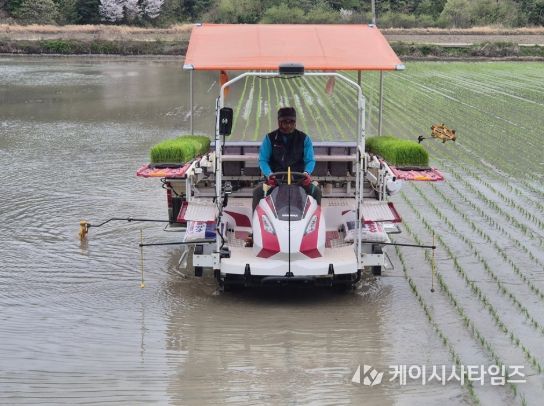 (케이시사타임즈) 신안군은 지역 특성에 맞는 조생종 벼 품종 선발과 최적 이앙시기 확립을 위해 지난 20일 자은면 2ha 규모 실증포장에서 첫 모내기 작업을 실시했다.