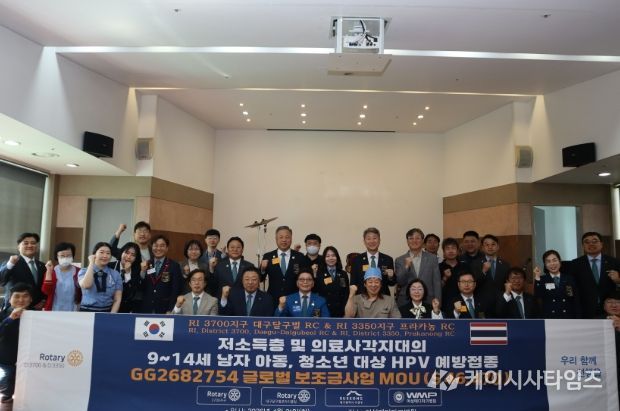 (케이시사타임즈) 대구 수성구는 국제로타리 3700지구(대구달구벌로타리클럽), 여성메디파크병원과 지난 21일 저소득층 및 의료사각지대에 있는 남자 아동·청소년을 대상으로 ‘HPV(사람유두종바이러스) 예방접종 지원을 위한 업무협약’을 체결했다.