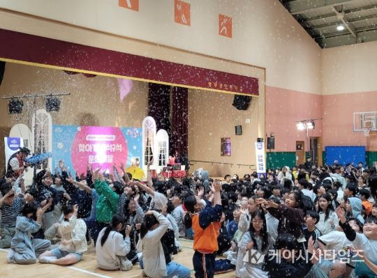 이날 공연은 오전 9시 40분부터 11시 20분까지 총 2회에 걸쳐 진행됐으며, 1회차는 4·5학년, 2회차는 2·3학년을 대상으로 운영됐다. 버블(Bubble)과 벌룬(Balloon)을 활용한 공연은 시각적 즐거움과 참여형 요소를 결합해 학생들의 큰 호응을 얻었으며, 강당을 가득 채운 웃음과 박수 속에서 진행됐다.