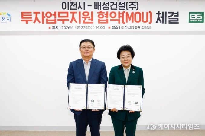 (케이시사타임즈) 이천시가 22일 배성건설㈜와 203억 원 규모의 투자업무지원협약을 체결하고, 기업의 신규 공장 신설을 본격 지원한다.