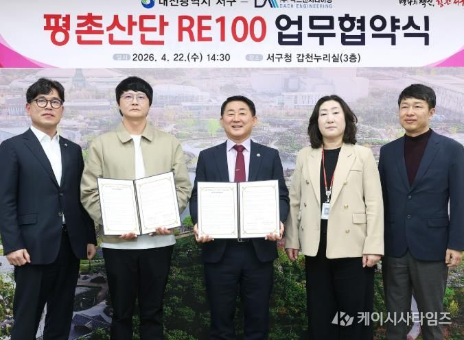 (케이시사타임즈) 대전 서구는 22일 구청 갑천누리실에서 평촌일반산업단지 입주기업인 ㈜닥스엔지니어링과 재생에너지 보급 확산을 위한 ‘RE100 업무협약’을 체결했다.