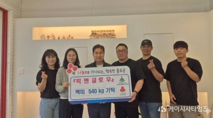 (케이시사타임즈) 울주군 범서읍 구영리에 위치한 ‘픽앤글로우’가 22일 범서읍 행정복지센터에 지역 내 어려운 이웃을 위한 백미 540㎏을 전달했다.