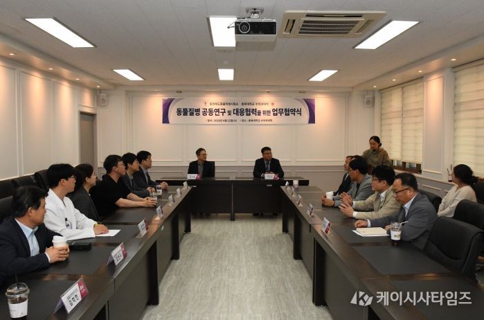 (케이시사타임즈) 충청북도동물위생시험소와 충북대학교 수의과대학은 22일 충북대학교에서 동물질병 공동연구 및 대응을 위한 업무협약(MOU)을 체결하고 가축전염병 대응 능력을 고도화하겠다고 밝혔다.
