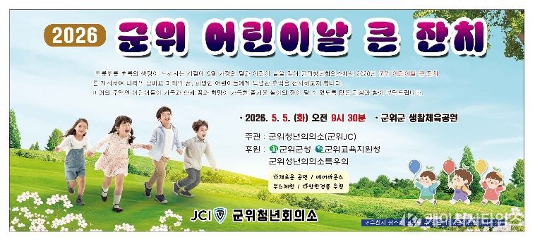 이번 행사는 2026년 5월 5일 오전 9시 30분부터 군위생활체육공원에서 열리며, 군위청년회의소(회장 김주환)가 주관한다. 행사에서는 아동 권리헌장 낭독과 모범어린이 시상을 시작으로, 18종의 체험부스 운영과 기념 공연이 이어질 예정으로 어린이와 온 가족이 함께 즐길 수 있는 다채로운 프로그램이 마련된다.