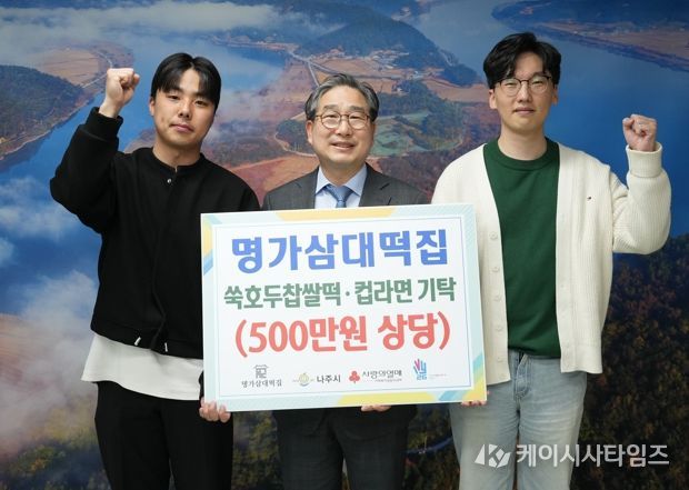 이날 기탁식에는 강상구 나주시장 권한대행, 명가삼대떡집 장효민 본부장, 박용민 팀장이 참석했다.