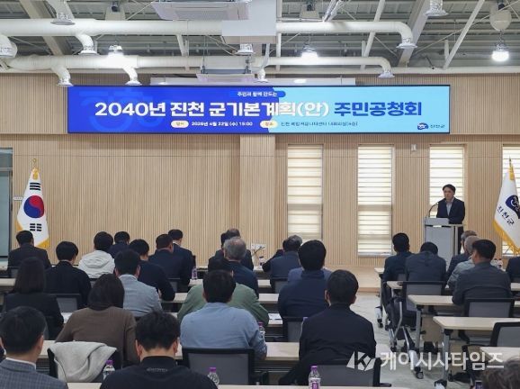 (케이시사타임즈) 충북 진천군은 지속가능한 미래 발전 방향 모색과 주민의 목소리 청취를 위해 진천읍 복합커뮤니티센터에서 2040년 진천 군 기본계획(안) 공청회를 개최했다고 22일 밝혔다.