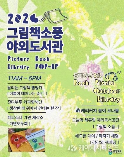 (케이시사타임즈) 충북도가 4월 25일부터 26일까지 이틀간 도청 문화광장 815에서 온 가족이 함께 즐기는 ‘충북야외도서관 '그림책 소풍'’ 행사를 개최한다.