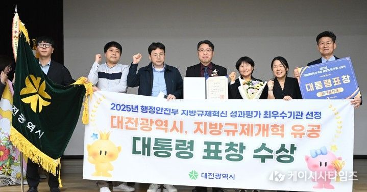 (케이시사타임즈) 대전시는 22일 정부세종청사에서 열린 ‘2026년 지방규제혁신 시상식’에서 지방규제혁신 유공 대통령 기관표창을 수상했다.