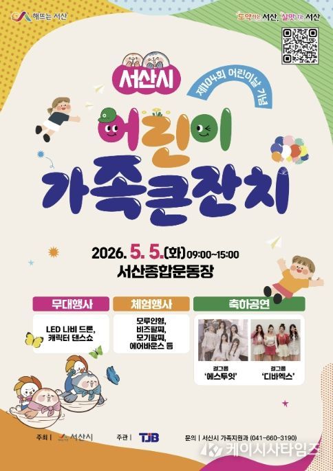 (케이시사타임즈) 충남 서산시가 제104회 어린이날을 맞아 어린이 가족 큰잔치를 개최한다.