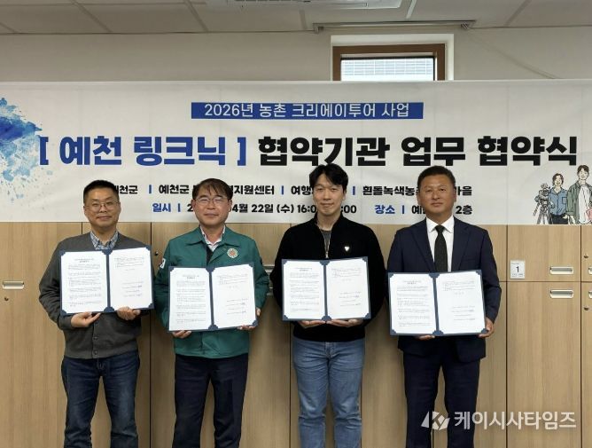 (케이시사타임즈) 예천군은 지난 22일 오후 4시, ‘농촌 크리에이투어’ 사업의 체계적인 추진과 민·관 협력 강화를 위한 민간 협의체를 구성하고 업무 협약을 체결했다고 밝혔다.