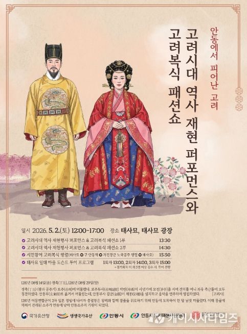 (케이시사타임즈) 안동시 도시재생지원센터는 오는 5월 2일 12시부터 태사묘와 태사광장 일대에서 ‘2026년 생생 국가유산 사업’의 일환으로 진행되는 '안동에서 피어난 고려' 행사를 개최한다고 밝혔다.