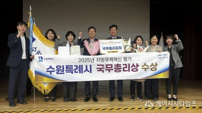 (케이시사타임즈) 수원특례시가 행정안전부 주관 ‘2025년도 지방규제개혁 유공’ 평가에서 규제개혁 성과를 인정받아 국무총리 기관 표창을 받았다. 시상식은 22일 정부세종청사에서 열렸다. 수원시는 개인 표창도 받았다.