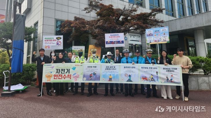 특히 하교 시간대 학생 유동인구가 많은 지역에서 안전모 착용, 교통법규 준수, 보행자 배려 등 자전거 이용 수칙을 안내하고 홍보물을 배부하며 교통안전 의식 제고에 나섰다.