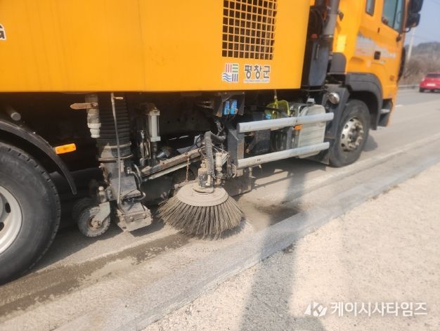 (케이시사타임즈) 평창군은 겨울철 제설 작업으로 발생한 도로 잔류 제설재 제거와 미세먼지 저감을 통한 도로 환경 개선을 위해 살수 및 노면 청소를 시행하고 있다.