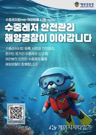 (케이시사타임즈) 중부지방해양경찰청은 「수중레저활동의 안전 및 활성화 등에 관한 법률」(약칭. 수중레저법)을 시행(4.23.)하며 수중레저 안전관리를 강화한다고 밝혔다.