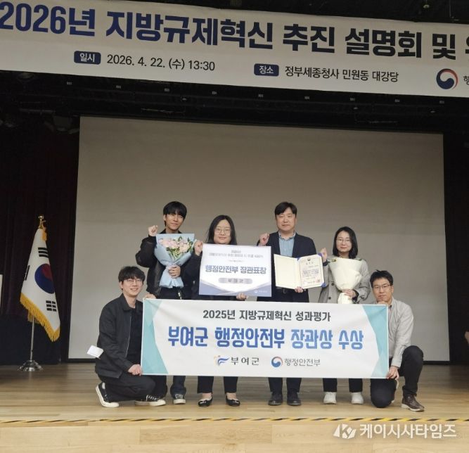 (케이시사타임즈) 충남 부여군은 행정안전부 주관‘2025 지방자치단체 규제혁신 추진 성과평가’에서 행정안전부 장관 표창을 받았다고 23일 밝혔다.