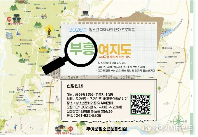 (케이시사타임즈) 부여군시설관리공단 문화의집은 관내 청소년(초4~고3) 10명을 대상으로 AI 기술을 활용해 부여의 숨은 명소를 발굴하고 디지털 지도를 제작하는 프로그램 ‘부흥여지도’를 운영한다고 밝혔다.