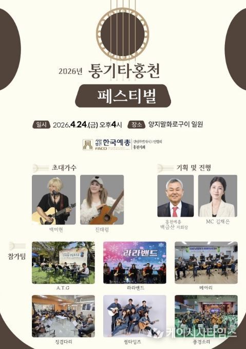 (케이시사타임즈) (사)한국예총 홍천지회가 주관하는 2026 통기타 홍천 페스티벌이 오는 4월 24일 오후 4시 홍천 양지말화로구이 일원에서 열린다.