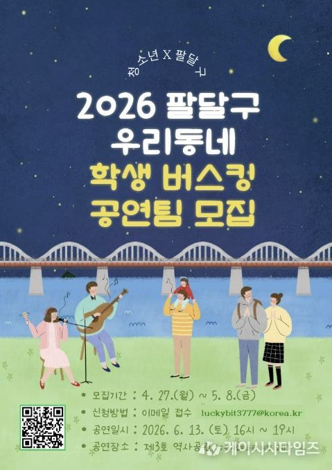 (케이시사타임즈) 수원시 팔달구가 청소년들이 직접 주인공이 되어 공연에 참여하고 즐기는 ‘2026 팔달구 우리동네 학생 버스킹’의 공연팀을 모집한다고 밝혔다.