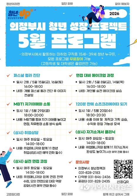 (케이시사타임즈) 의정부시는 미취업 청년의 취업 준비 역량 강화를 위해 ‘청년성장프로젝트’ 5월 프로그램을 운영한다.