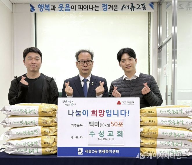 (케이시사타임즈) 지난 22일, 수원시 권선구 세류동에 소재한 수성교회는 백미 500kg을 세류2동 행정복지센터에 전달했다.