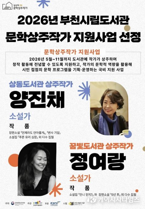 (케이시사타임즈) 부천시립상동도서관과 꿈빛도서관은 문화체육관광부가 주관하고 한국문화예술위원회가 주최하는 ‘2026년 도서관 상주작가 지원사업’ 공모에 선정돼 5월부터 시민 대상 문학 프로그램을 운영한다.