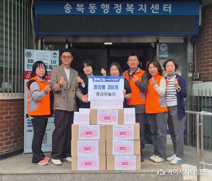 (케이시사타임즈) 풍금아놀자는 지난 22일 화장품 300개를 평택시 송북동 행정복지센터에 전달했으며, 기부된 화장품은 송북동 내 취약계층 가구에 전달될 예정이다.